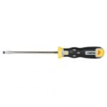 Mango trimaterial antideslizante. Varillas acero molibdeno-vanadio 60 HRc con tratamiento térmico integral. Puntas pavonadas con mecanizado de alta precisión. Fabricación nacional según norma DIN. Plana 1,2×6,5×150 mm.